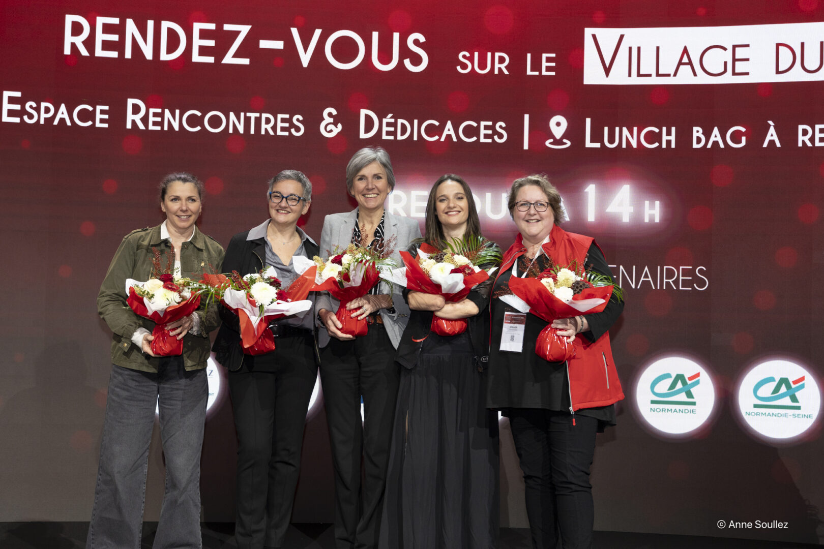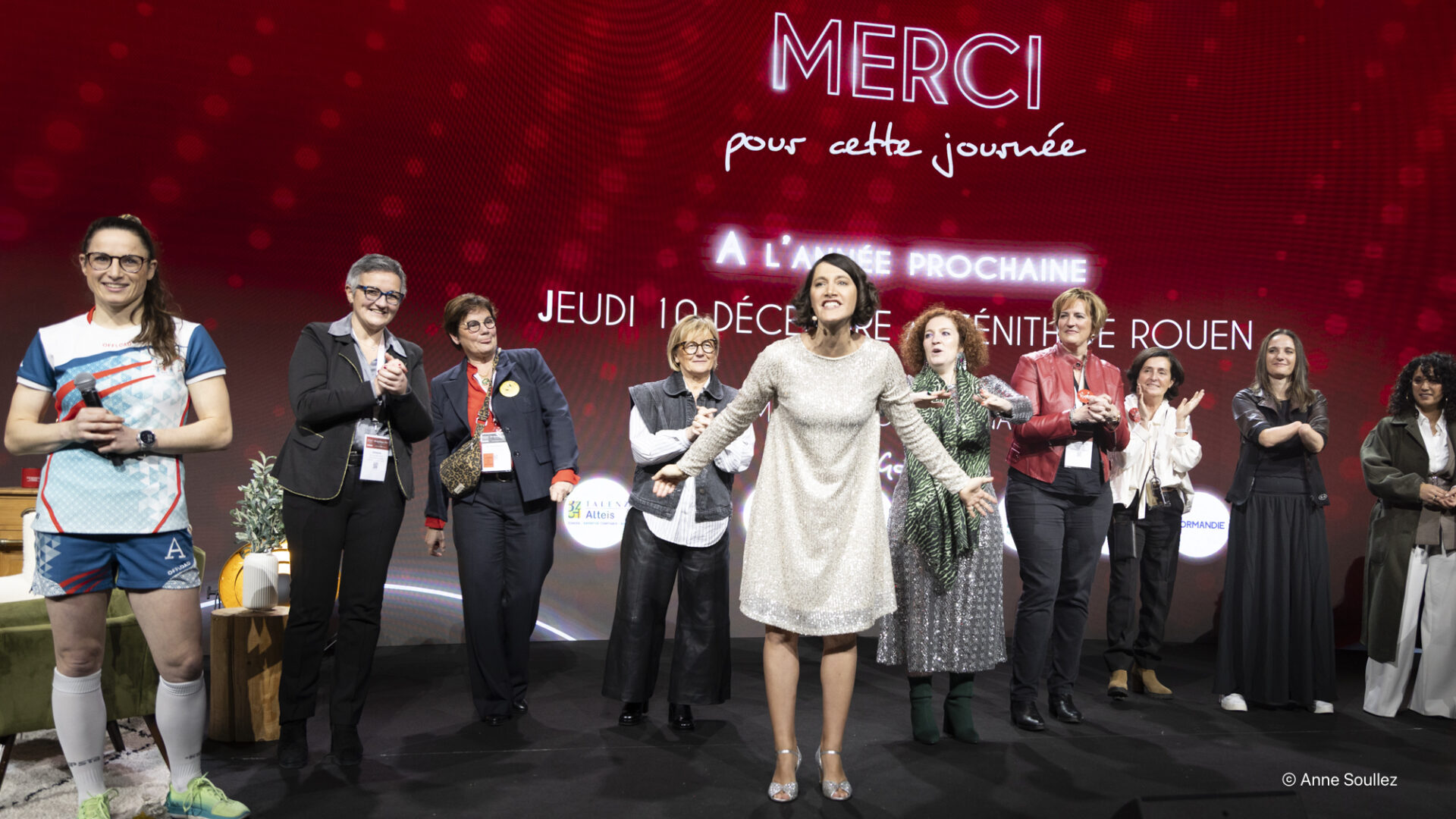Lucie RETAIL, Conférencière en Vérité de soi, Yaël BRAUN-PIVET, Présidente de l’Assemblé nationale, Nicole AMELINE, Membre du Comité Consultatif du Conseil des Droits de l’Homme de l’ONU & Présidente de l’Institut International des Droits de l’Homme et de la Paix, Laura DI MUZIO, Ancienne joueuse de rugby de haut niveau, Conférencière, Maïtena BIRABEN & Alexandra CRUCQ, Co-fondatrices de Mesdames productions et Mesdames media, Margaux NICOLEAU, Directrice et programmatrice du Biches Festival, Arnaud TANQUEREL, Président fondateur du Festival International du Cirque de Bayeux, Elise GRANDJACQUES VAN COLEN, Dirigeante d’Equi Normandie, Emanuelle HOCHE, Responsable Partenariat Patients au Centre Henri Becquerel, Céline HAYE, Co-fondatrice et Présidente de la brasserie la Vertueuse, Clothilde BAGÉ, Directrice Européenne des Opérations pour Starkey Hearings et ingénieure, Karine BOURGUIGNON, Directrice Générale – Crédit Agricole Normandie-Seine, Gaëlle LE VU, Directrice de cabinet du CEO d’Orange France, Sophie GAUGAIN, 1ère Vice-Présidente de la Région Normandie (dév. éco.) et Membre du Haut Conseil à l’Egalité, Dominique CARLAC’H, Vice-Présidente d’ABGi, Membre du conseil exécutif du MEDEF et Fondatrice du réseau Femmes du MEDEF, Laure DE CHANTAL, Editrice et directrice de la marque La vie des Classiques, Laïla COSTA PEREIRA, Présidente de TP-MG Energies, Manon COMALADA, Directrice générale de PEG, Daniel SAUVAGET, Président fondateur d’Ecomiam.